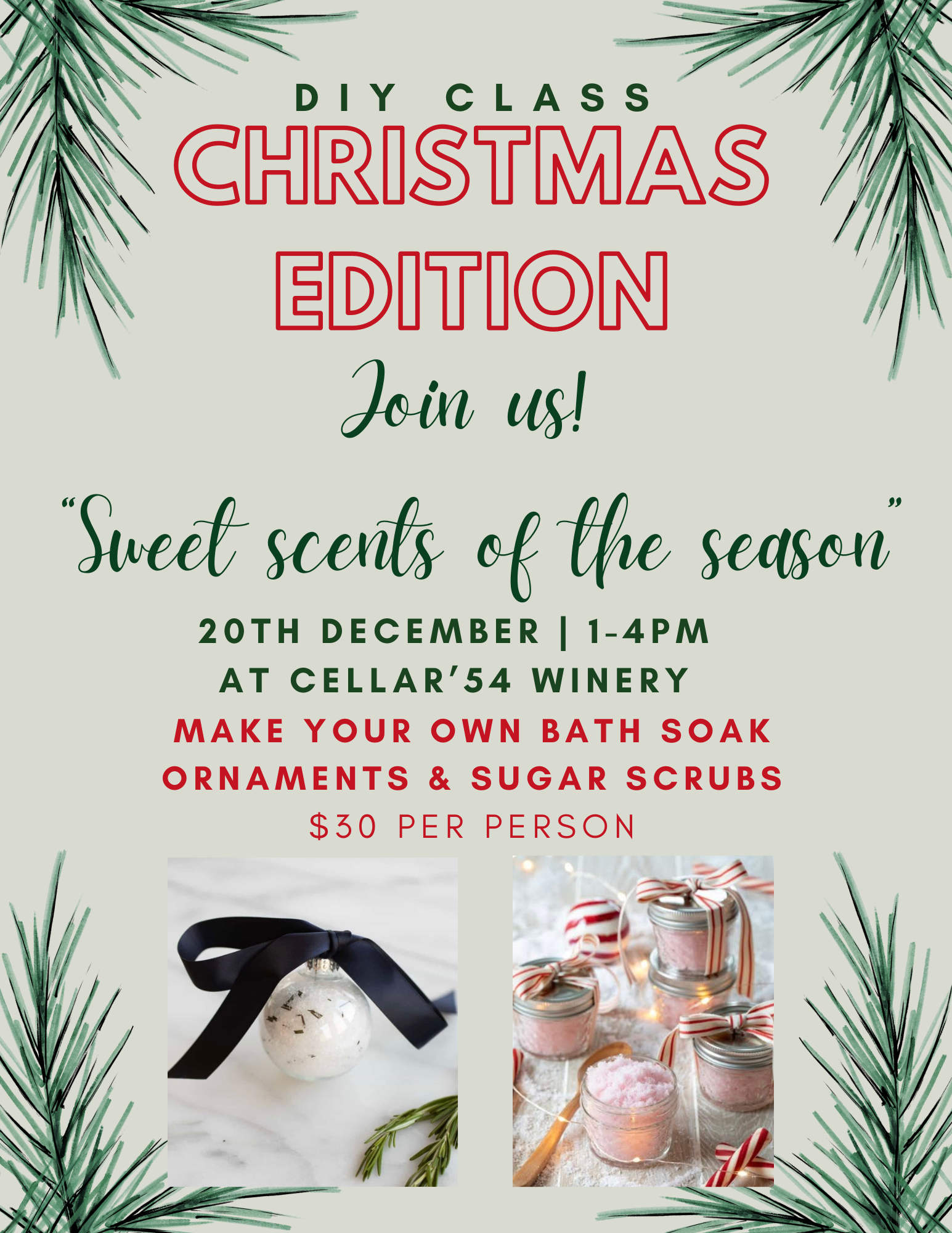 Make your own bath soak ornament or sugar scrub. $30 per person